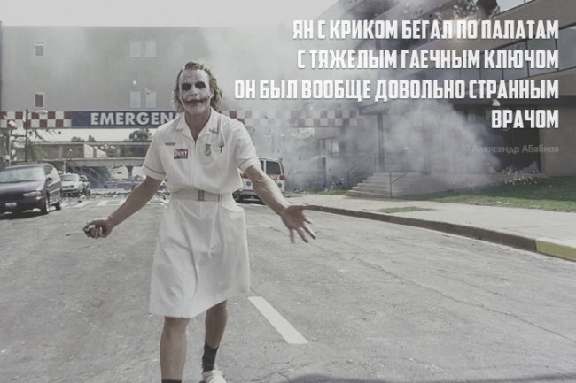 то ли стихоплет подустал, то ли это подражатели неумелые :) надо так (кое-где чернуха, кисейным барышням не читать): илья старается скорее уравновесить зло добром увидел парни бьют мальчишку красиво рядом станцевал --- давайте трахаться почаще кричал на площади илья а люди шли не глядя мимо но каждый думал а давай --- еду вводите перорально ректально выводите кал дает инструкции олегу немного удивленный врач --- глухая русская деревня шпионский спутник прям над ней и самому не интересно и богу всё загородил --- лежит в блевотине евгений к нему оксана подползла казалось бы какие танцы но нет танцуют погляди --- олег за всё берётся смело всё превращается в говно а если за говно берётся то просто тратит меньше сил --- висят на сцене в первом акте бензопила ведро и ёж заинтригован станиславский боится выйти в туалет --- глеб николаич чернышевский не родственник а просто так однако на вопрос что делать часами может отвечать --- трибрахидецилэктомия хирург хирургу говорит тот понимающе кивает на койке сжался пациент --- олег старается чтоб мама в глазах читала у него за эту кашу вам пездячек не избежать как подрасту --- я думал ты придёш до завтра а ты лиш завтра и пришла но сразу так меня достала как если бы пришла вчера --- домой уже я еду мама мне надо что нибудь купить купи себе квартиру сволочь живи отдельно от меня --- купил лекарство от поноса василий и спешит домой бежит и сильно вдруг чихает и дальше медленно идёт --- очнулся утром в окнах осень желтит листву но ведь весной я с парашютом вроде прыгал откуда шрамы гипс врачи |