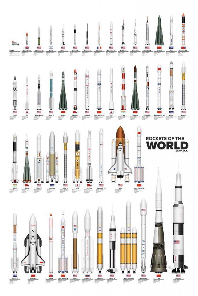 Сравнение размеров всех "серийных" LV Земли. Под серийными имеется ввиду, ракеты которые летали в космос хотя бы 3 раза. Самая мощная и большая будет SLS первая в мире дип-спейс ракета, тут её по понятным причинам пока нет. Она будет готова к 2017'у.